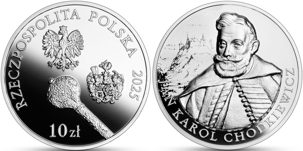 POLOGNE 10 Zloty 2025 – Jan Karol Chodkiewicz – 31,1 g Argent 999 Proof (haut relief) – 8000 exemplaires – diamètre 32 mm – prix ignoré.