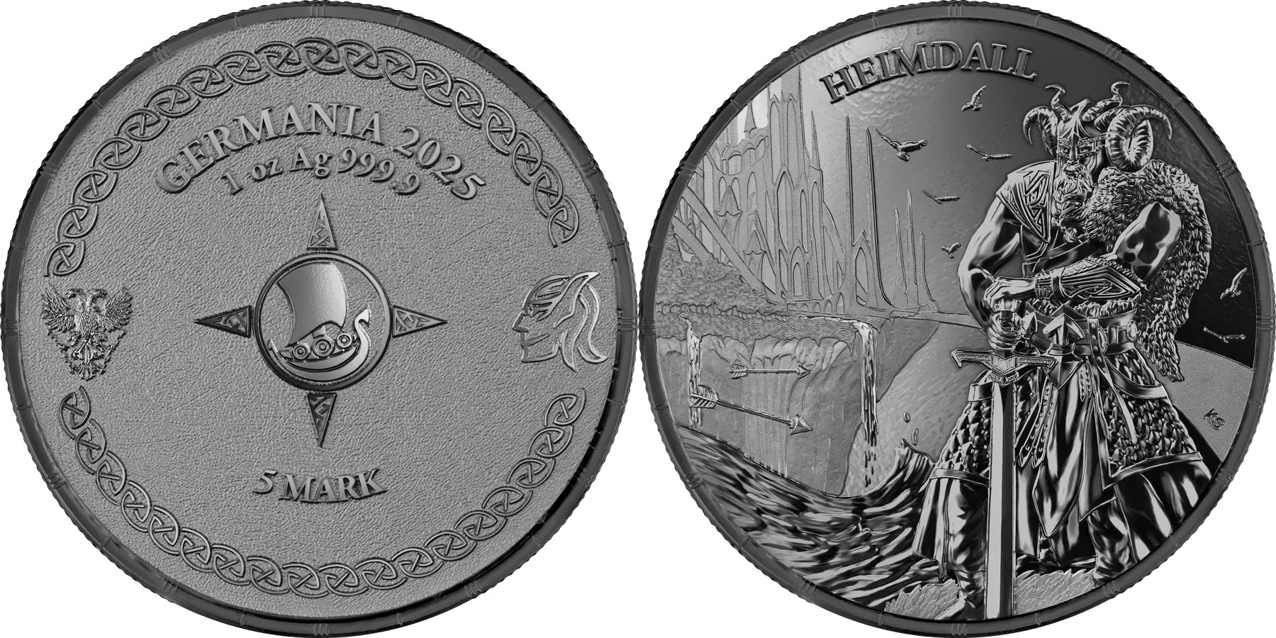 GERMANIA 5 Mark 2025 – Ragnarok : Heimdall – 1 oz 0.999 silver BU – mintage 5,000 – diameter 38.61 mm – unknown price.