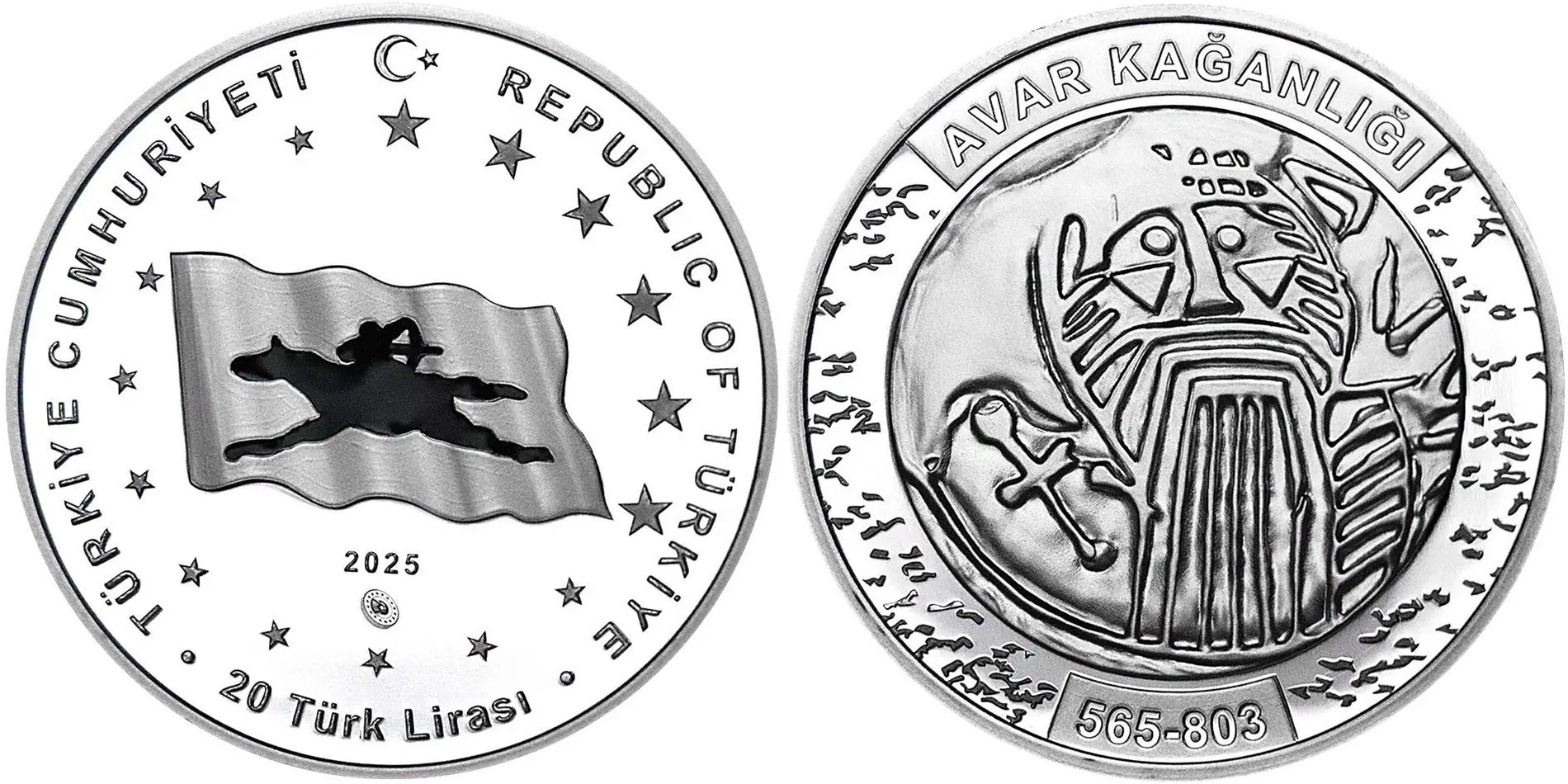 TURKEY 20 Lira 2025 – Avar Khaganate – 31.1 g 0.925 silver Proof – mintage 3,000 – diameter 38.61 mm – unknown price.