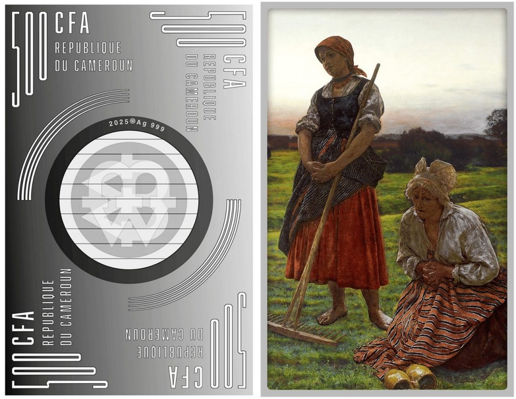 CAMEROON 500 Francs CFA 2025 – Aleksander Gierymski : Angelus – 17.5 g 0.999 silver Proof – mintage 500 pcs only – size 30 x 47 mm – unknown price.