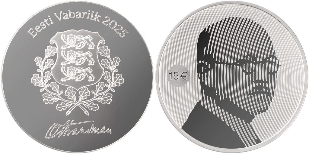 ESTONIA 15 Euro 2025 – Otto Strandman – 28.28 g 0.925 silver Proof – mintage 4,000 – diameter 38.61 mm – unknown price.