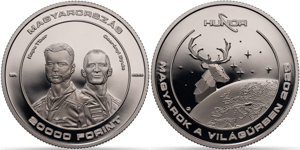 HONGRIE 20 000 Forint 2025 – Vol spatial hongrois – 31,46 g Argent 925 Proof – 4000 exemplaires – diamètre 38,61 mm – prix ignoré.
