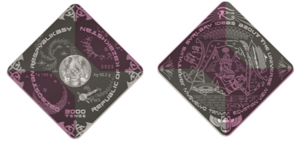 KAZAKHSTAN 2000 Tenge 2025 – Vue égyptienne – 100 g tantale + 62,2 g Argent 925 Proof – 400 exemplaires seulement – diamètre 50 mm – prix observé 393,74 euros.