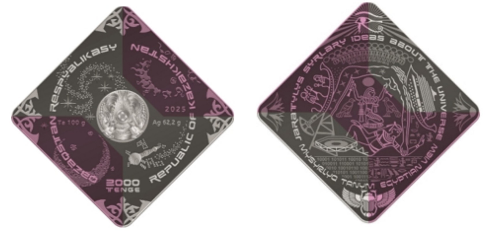 KAZAKHSTAN 2000 Tenge 2025 – Egyptian View – 100 g Tantalum + 62,2 g 0.925 silver Proof – mintage 400 pcs only – diameter 50 mm – observed price $458.50.