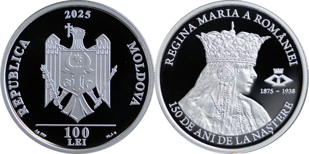 MOLDOVA 100 Lei 2025 – Queen Maria of Romania – 31.1 g 0.999 silver Proof – mintage 750 pcs – diameter 37 mm – unknown price.