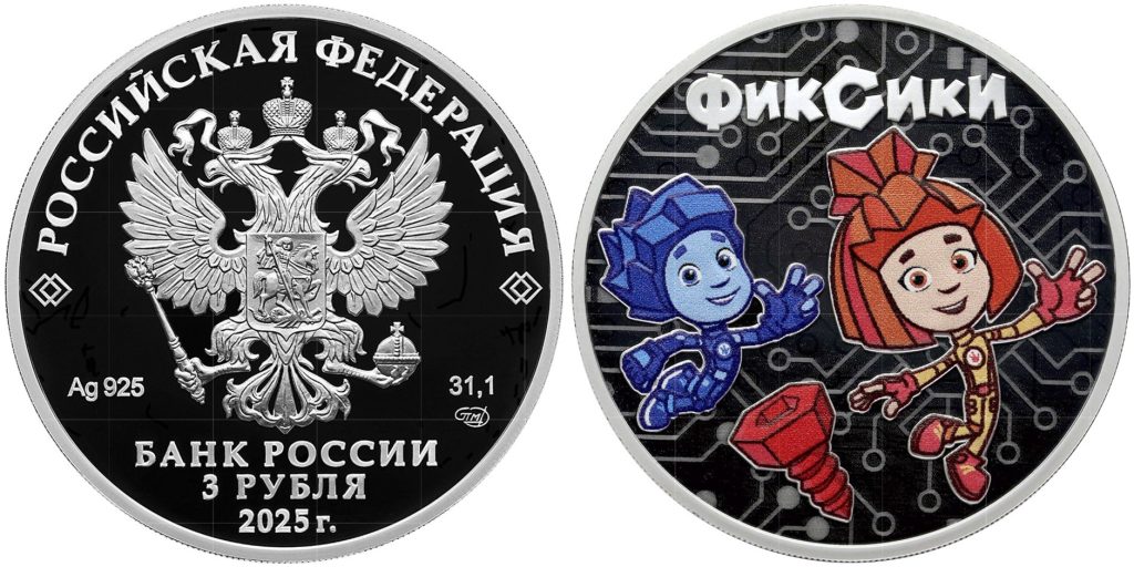 RUSSIA 3 Rubles 2025 – The Fixies – 33.94 g 0.925 silver Proof – mintage 7,000 – diameter 39 mm – unknown price.