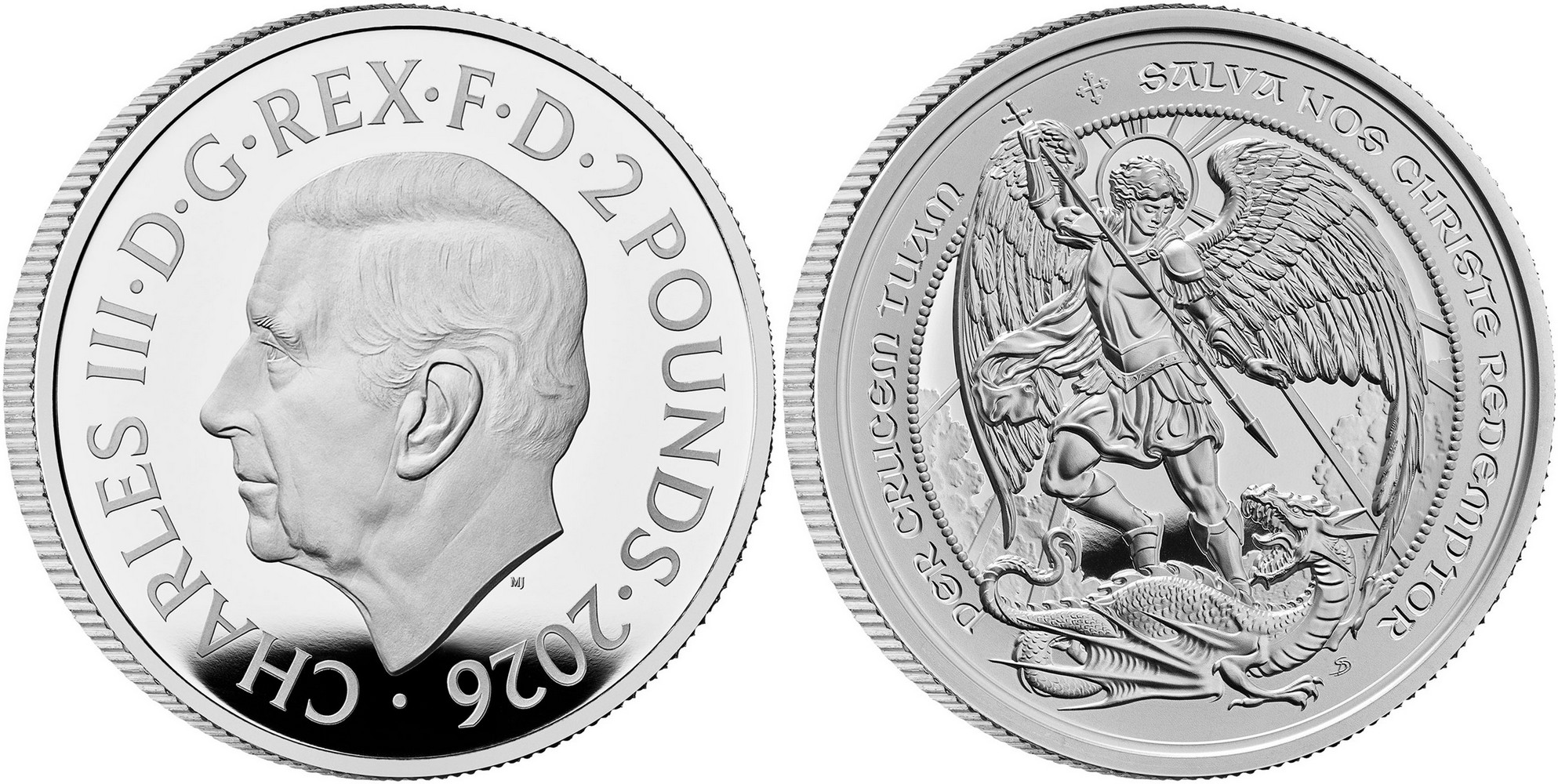 UNITED KINGDOM 2 Pounds 2026 – Archangel Michael – 32.21 g 0.999 silver Proof – mintage 3,010 – diameter 38.61 mm – unknown price. 2 ounces version exist.