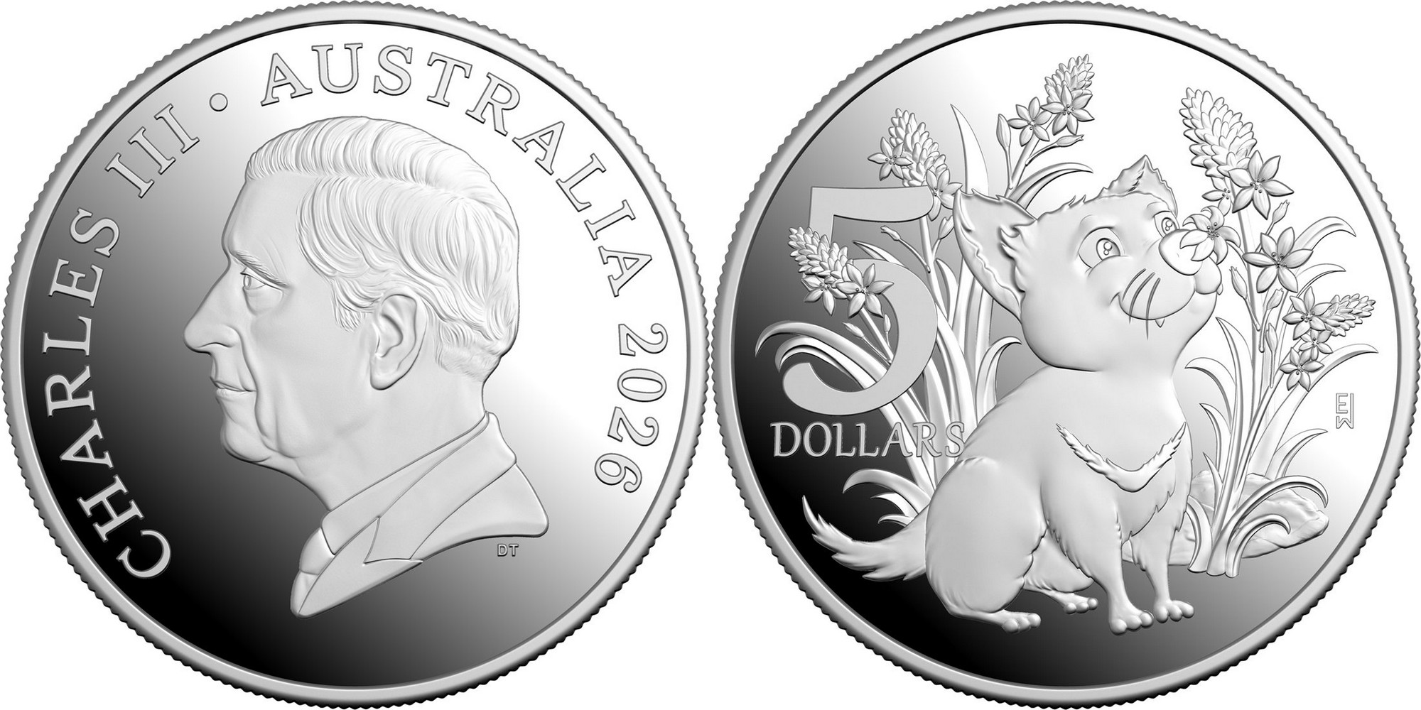 AUSTRALIA 5 Dollars 2026 – Aussie Bubs : Tasmanian Devil – 1 oz 0.999 silver Proof – mintage 15,000 – diameter 40 mm – unknown price.