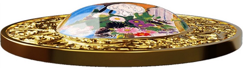 CAMEROON 500 Francs CFA 2025 – Flowers in a Rococo Vase by Paul Cézanne – 17.5 g 0.999 silver Proof (gilded with convex lens) – mintage 555 pcs – diameter 50 mm – unknown price.