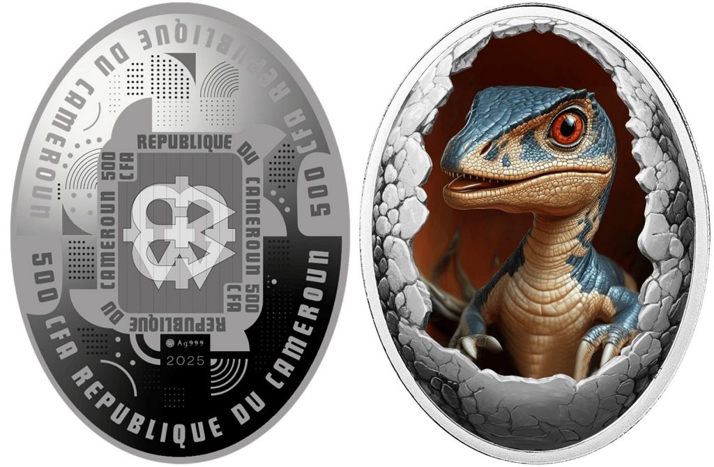 CAMEROON 500 Francs CFA 2025 – Velociraptor – 16.81 g 0.999 silver Proof – mintage 500 pcs only – size 29.2 x 39 mm – unknown price.