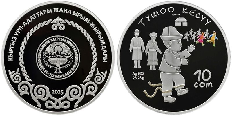 KYRGYZSTAN 10 Som 2025 – Tuşoo kesüü – 28.28 g 0.925 silver Proof – mintage 1,000 – diameter 38.61 mm – unknown price.