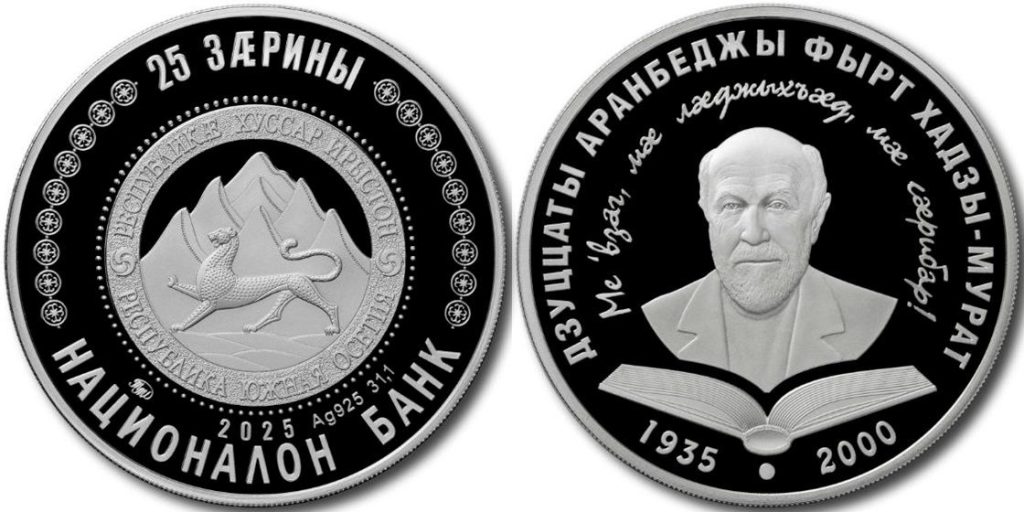 SOUTH OSSETIA 25 Zarin 2025 – Hadji-Murat Zuzzati – 33.94 g 0.925 silver Proof – unknown mintage – diameter 39 mm – unknown price.
