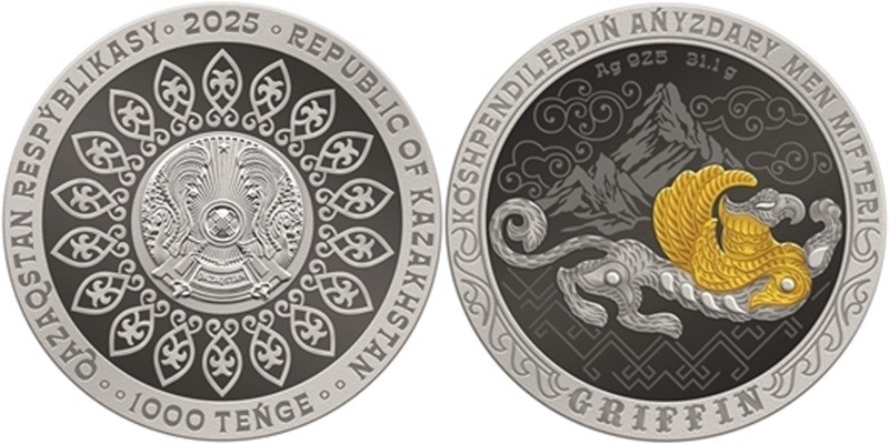 KAZAKHSTAN 1000 Tenge 2025 – Griffin – 31.1 g 0.925 silver Proof – mintage 2,000 – diameter 38.61 mm – unknown price.