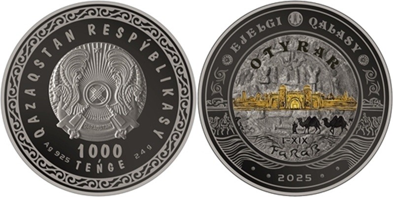 KAZAKHSTAN 1000 Tenge 2025 – Otyrar – 24 g Argent 925 Proof – 2000 exemplaires – diamètre 37 mm – prix ignoré.