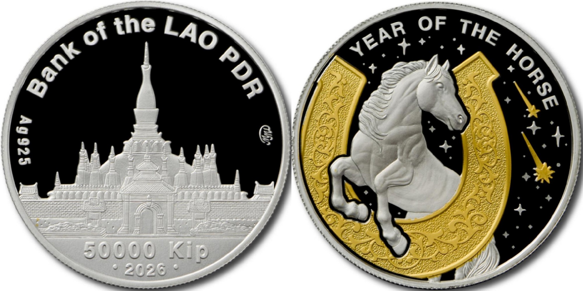 LAOS 50000 Kip 2026 – Year of the Horse – 17 g 0.925 silver Proof – mintage 1,000 – diameter 33 mm – unknown price.