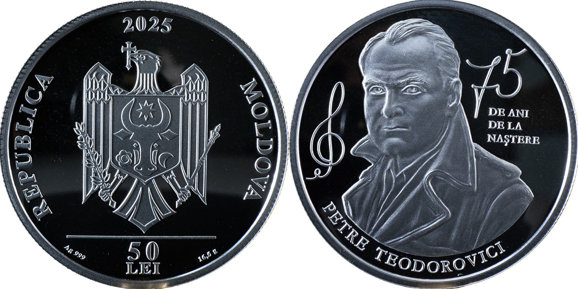 MOLDOVA 50 Lei 2025 – 75th anniversary of the birth of Petre Teodorovici – 16.5 g 0.999 silver Proof – mintage 500 pcs only – diameter 30 mm – unknown price.