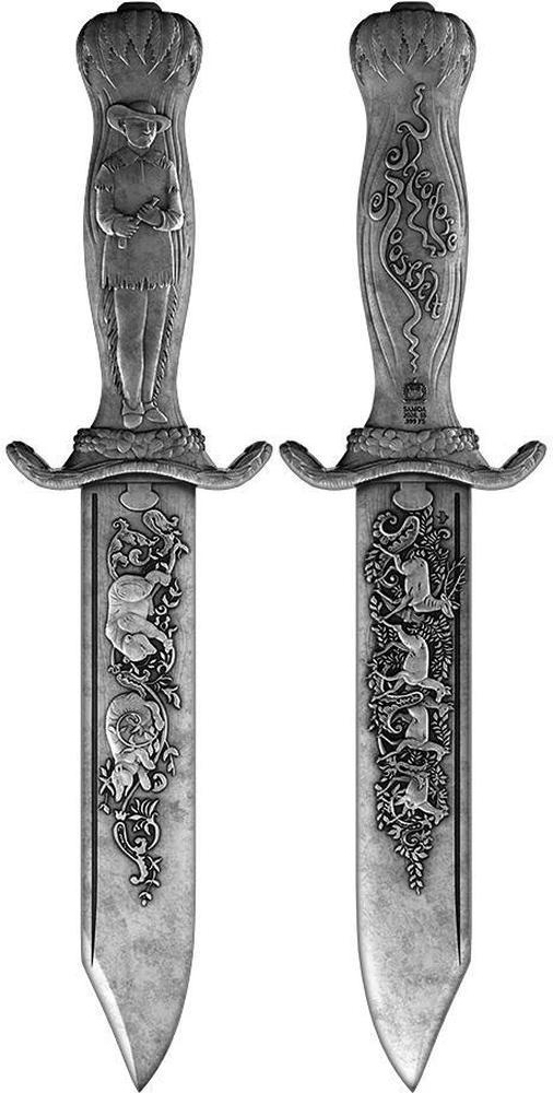 SAMOA 5 Dollars 2026 – Bowie Knife Theodore Roosevelt – 2 oz 0.999 silver antique finish – mintage 500 pcs only – size 36.9 x 150 mm – observed price $325.80.
