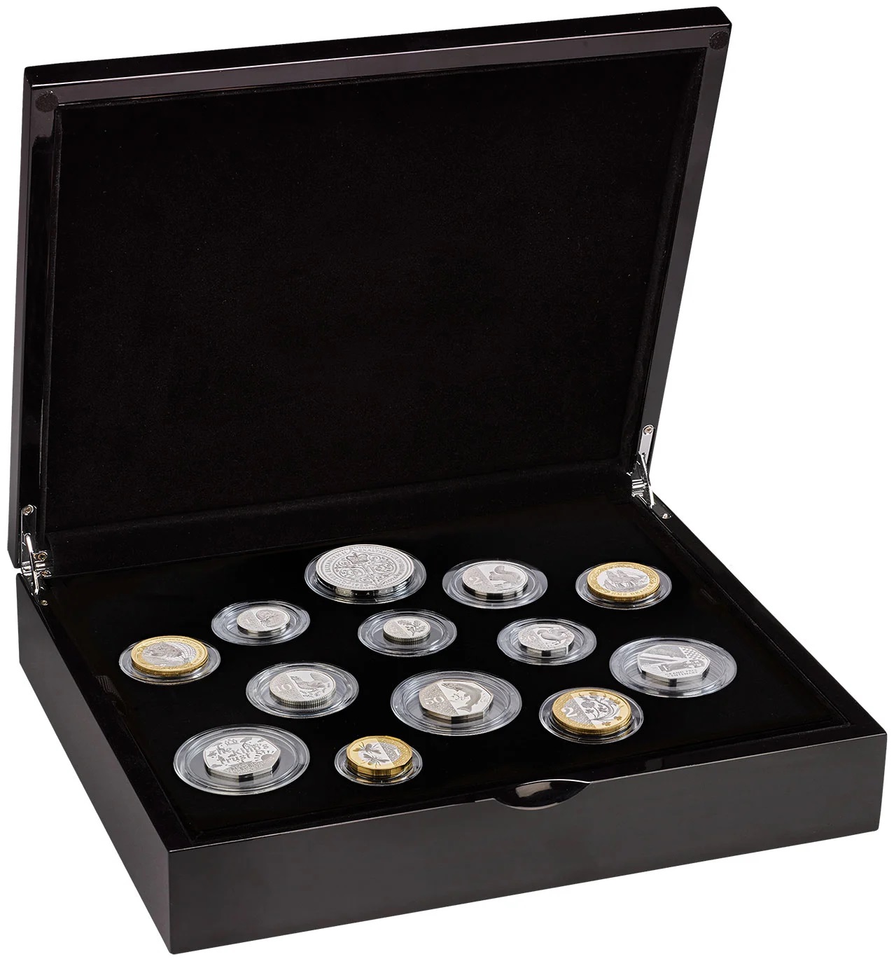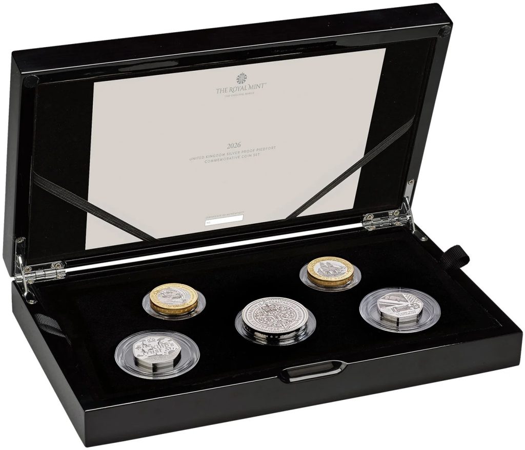 UNITED KINGDOM 13.88 Pounds 2026 – Silver Commemorative Set – weight between 28.28 g to 3.56 g 0.925 silver Proof – mintage 550 sets – various diameters – set price $1,109.