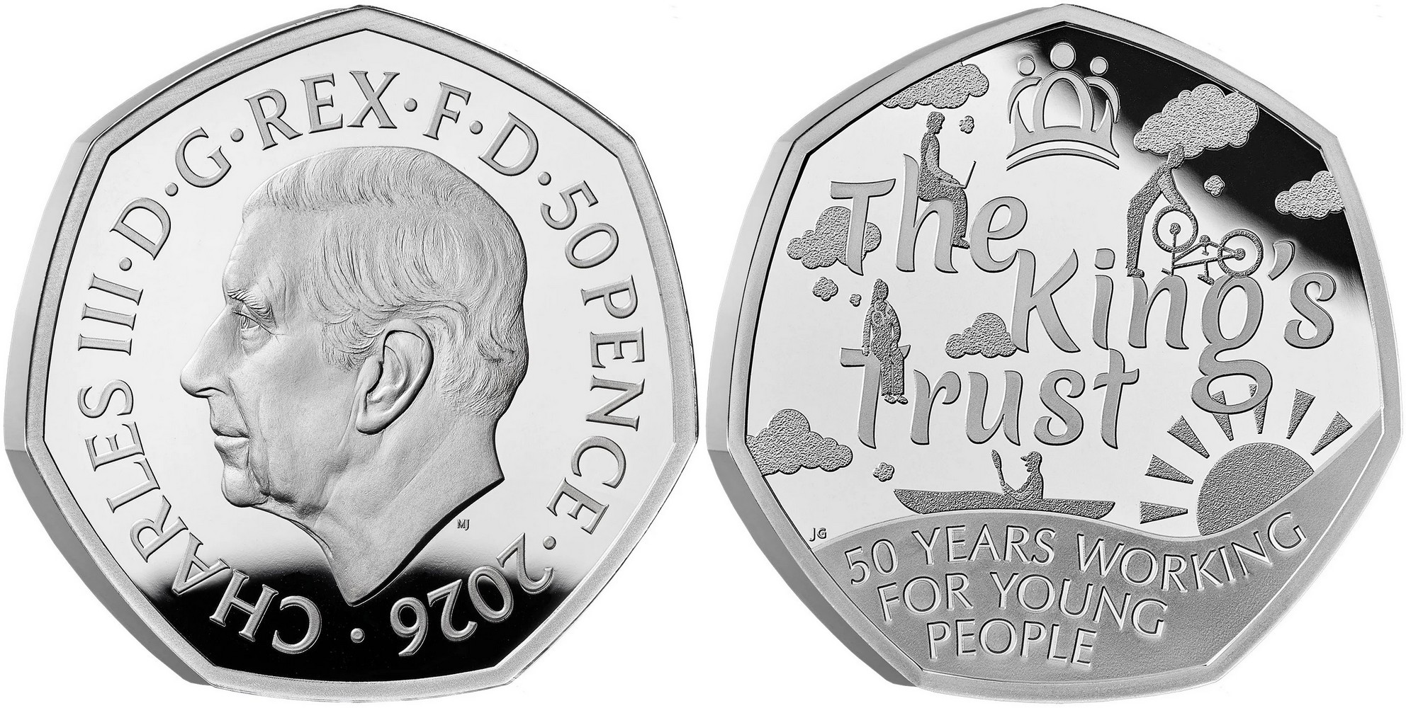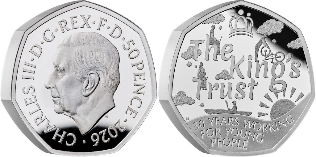 UNITED KINGDOM 50 Pence 2026 – The Kings Trust – 16 g 0.925 silver Proof – mintage 250 sets only – diameter 27.3 mm.