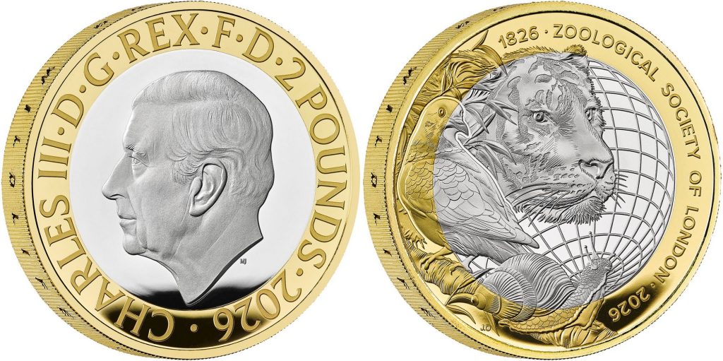 UNITED KINGDOM 2 Pounds 2026 – Zoological Society of London – 24 g 0.925 silver Proof (gilded outer ring) – mintage 250 sets only – diameter 28.4 mm.