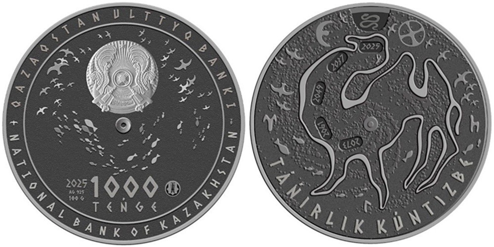 KAZAKHSTAN 1000 Tenge 2025 – Divine Calendar – 100 g 0.925 silver antique finish – mintage 500 pcs only – diameter 50 mm – unknown price.