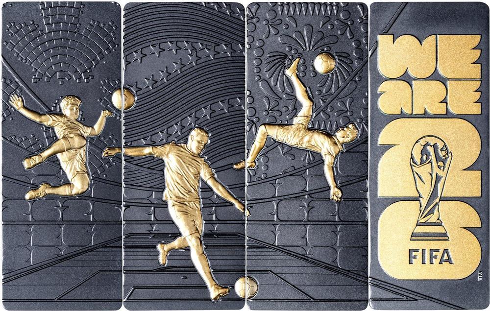 SAMOA 4 x 5 Dollars 2026 – World Cup FIFA 2026 – 4 x 1 oz 0.999 silver antique finish – mintage 500 pcs only – size 22 x 55 mm – observed price $563.