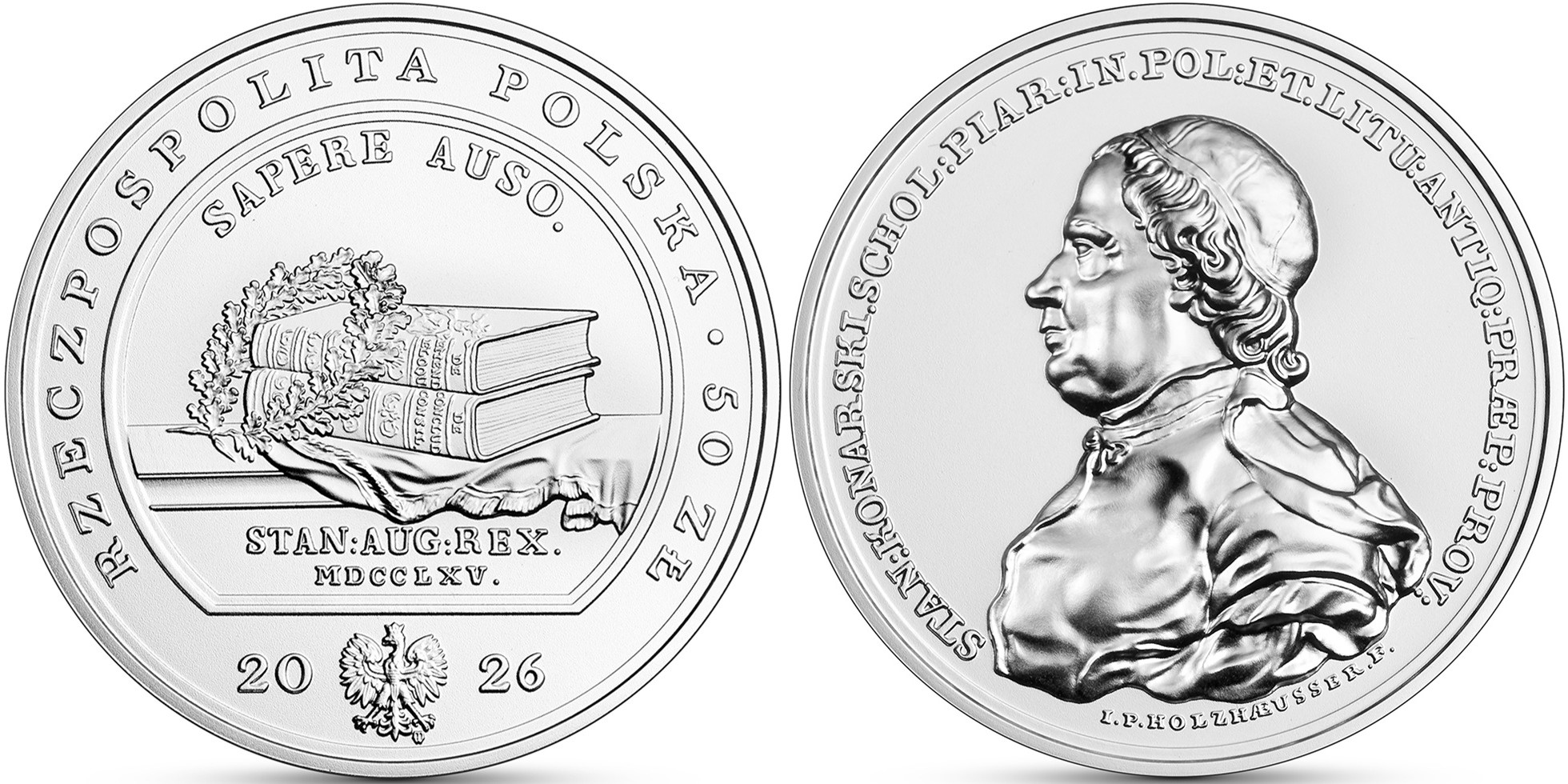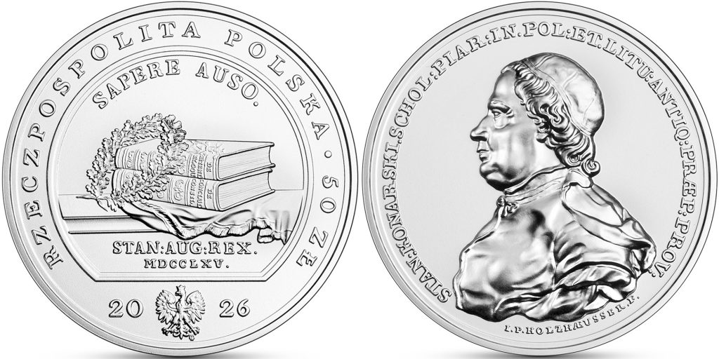 POLAND 50 Zloty 2026 – Stanisław Konarski – 2 oz 0.999 silver UNC (high relief) – mintage 4,000 – diameter 45 mm – unknown price.