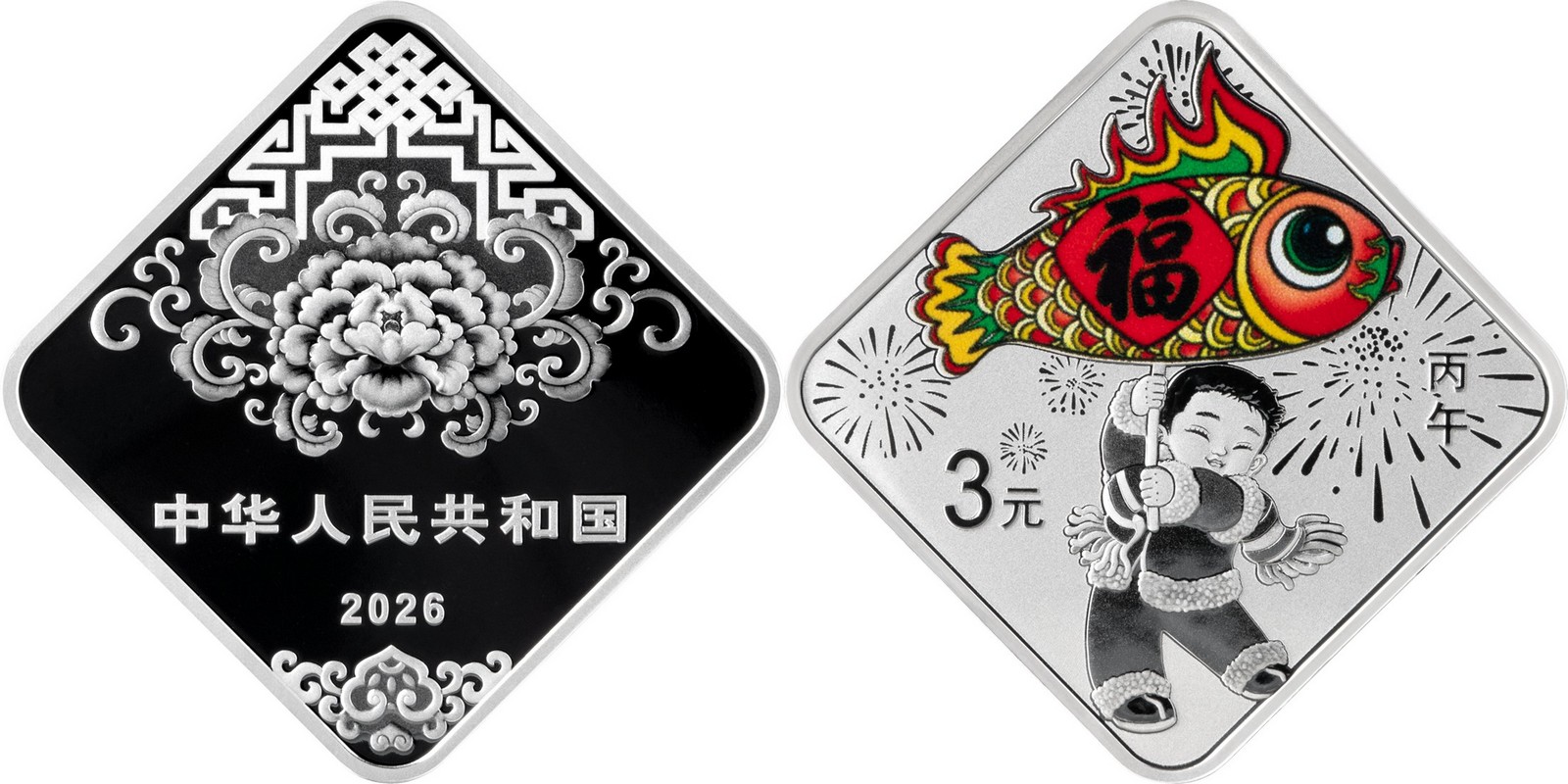 CHINA 3 Yuan 2026 – Lunar New Year – 8 g 0.999 silver BU – mintage 1 million – diameter 23 mm – unknown price.