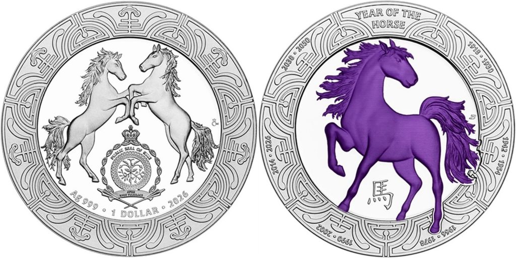 NIUE 1 Dollar 2026 – Year of the Horse – 1 oz 0.999 silver Proof – mintage 500 pcs only – diameter 37 mm – unknown price.