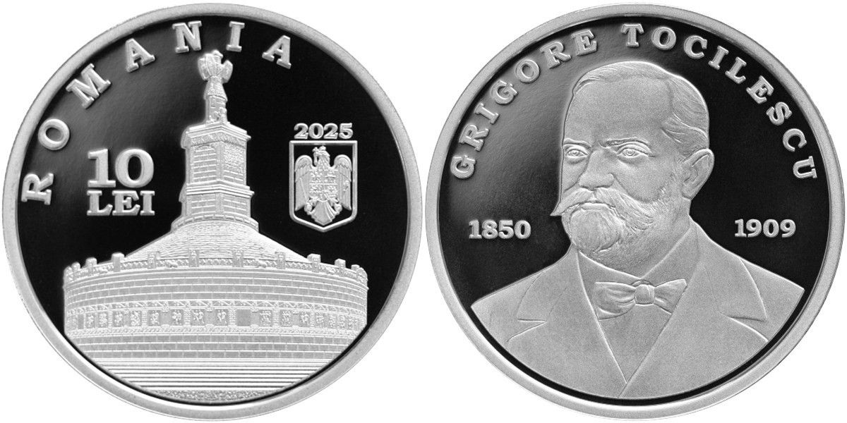 ROUMANIE 10 Lei 2025 – 175 ans de la naissance de Grigore Tocilescu – 31,1 g Argent 999 Proof – 5000 exemplaires – diamètre 37 mm – prix ignoré.