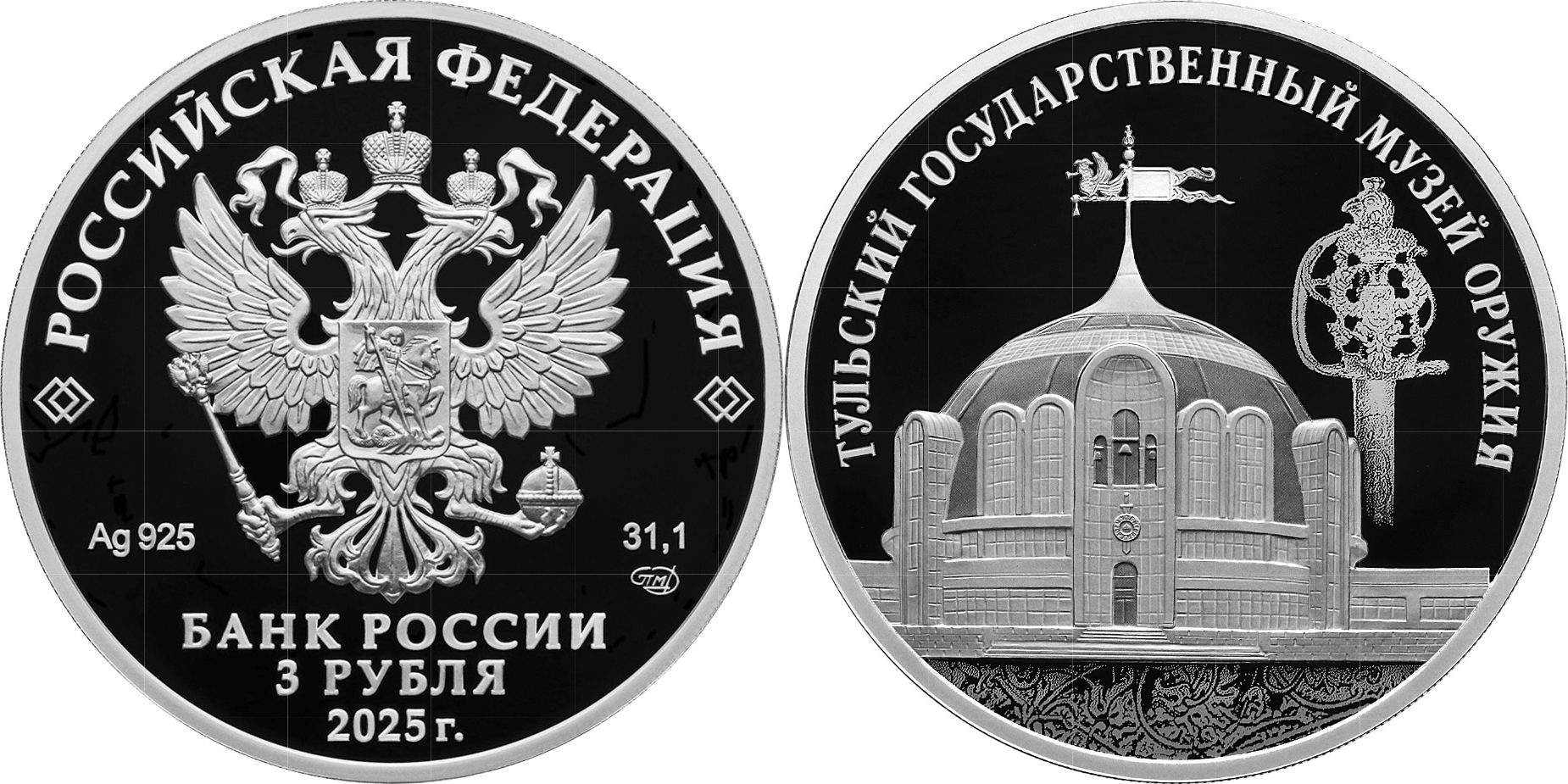 RUSSIA 3 Rubles 2025 – Tula State Museum of Weapons – 33.94 g 0.925 silver Proof – mintage 3,000 – diameter 39 mm – unknown price.