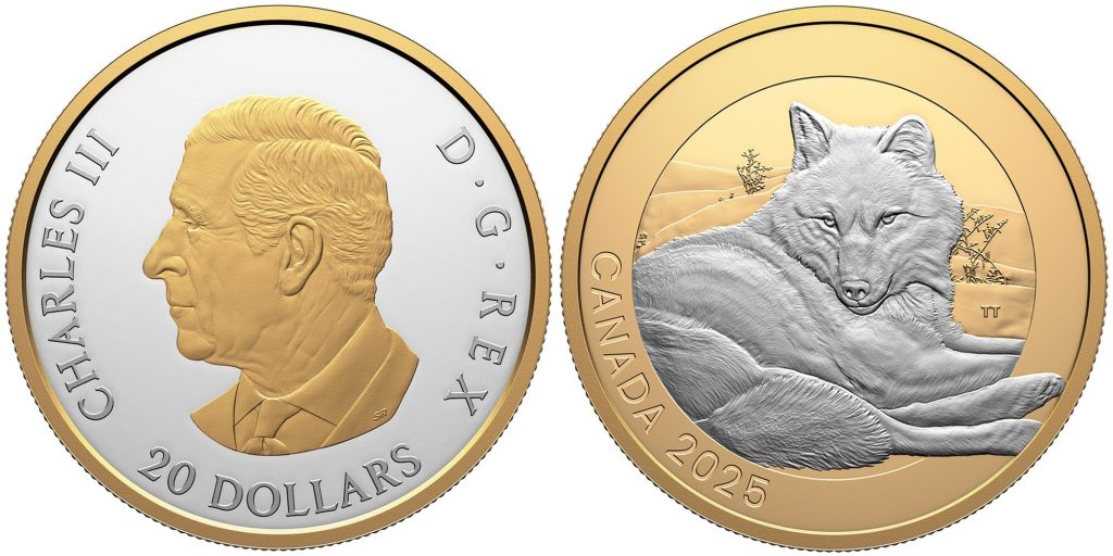 CANADA 20 Dollars 2025 – Animal Portraits : Grey Wolf – 31.39 g 0.999 silver Proof – mintage 7,500 – diameter 38 mm – price $94.20.
