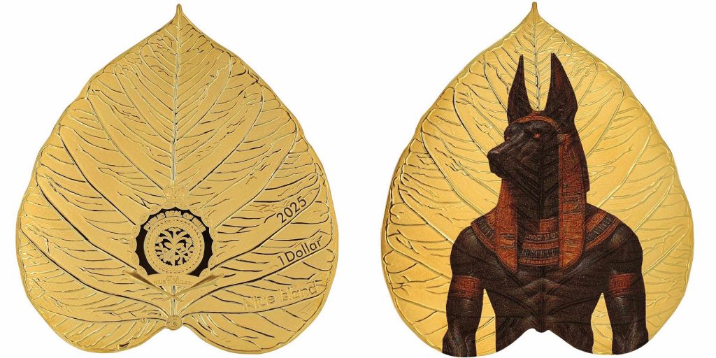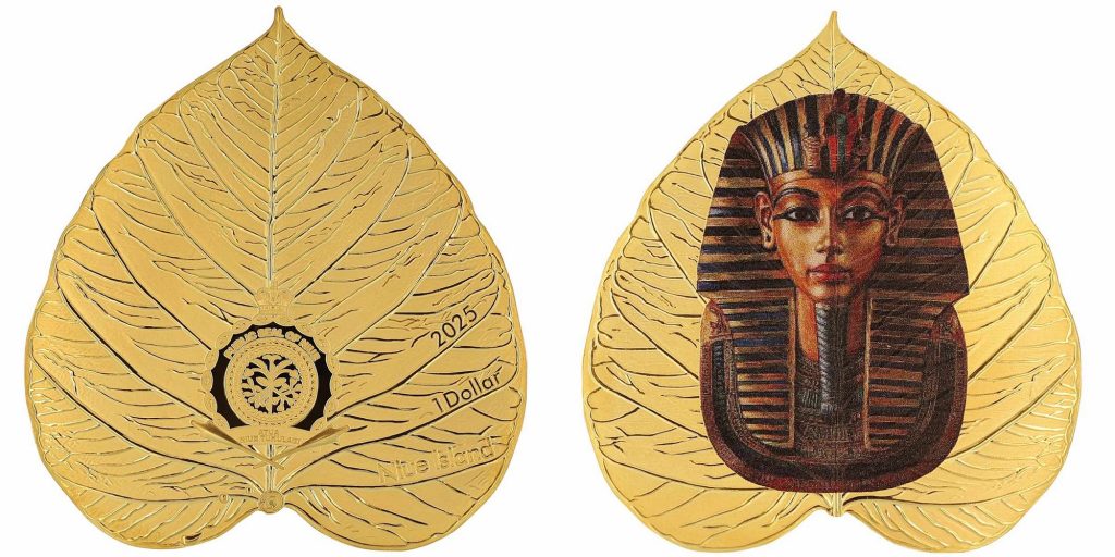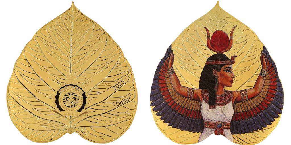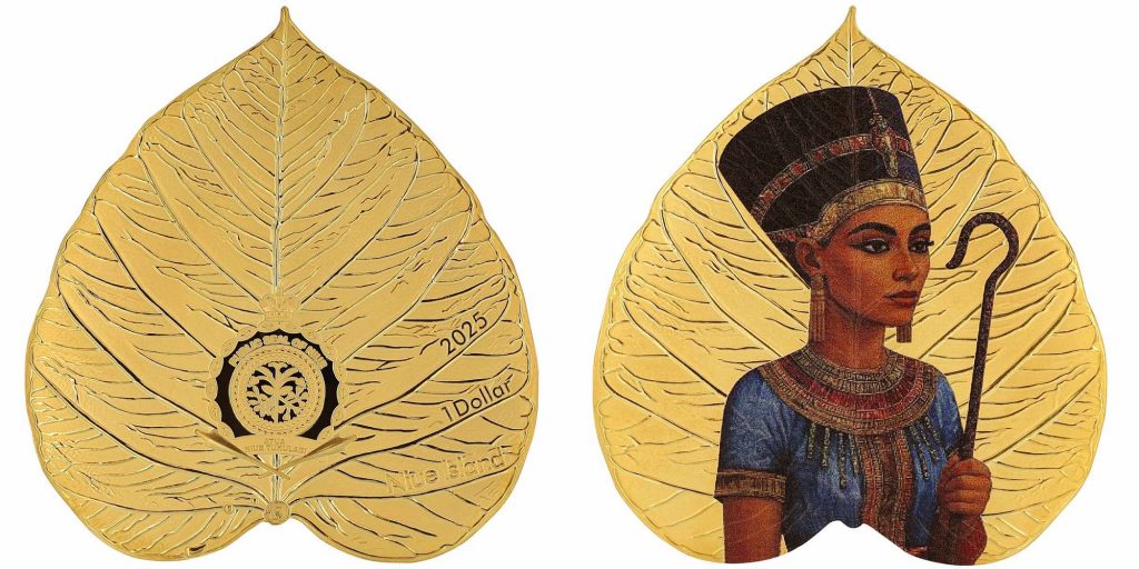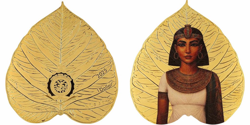 NIUE 5 x 1 Dollar 2025 – Leaves of the Nile – 5 x 1 oz 0.999 silver Proof (gilded) – mintage 99 pcs of each – size 64 x 70 mm – unknown price.