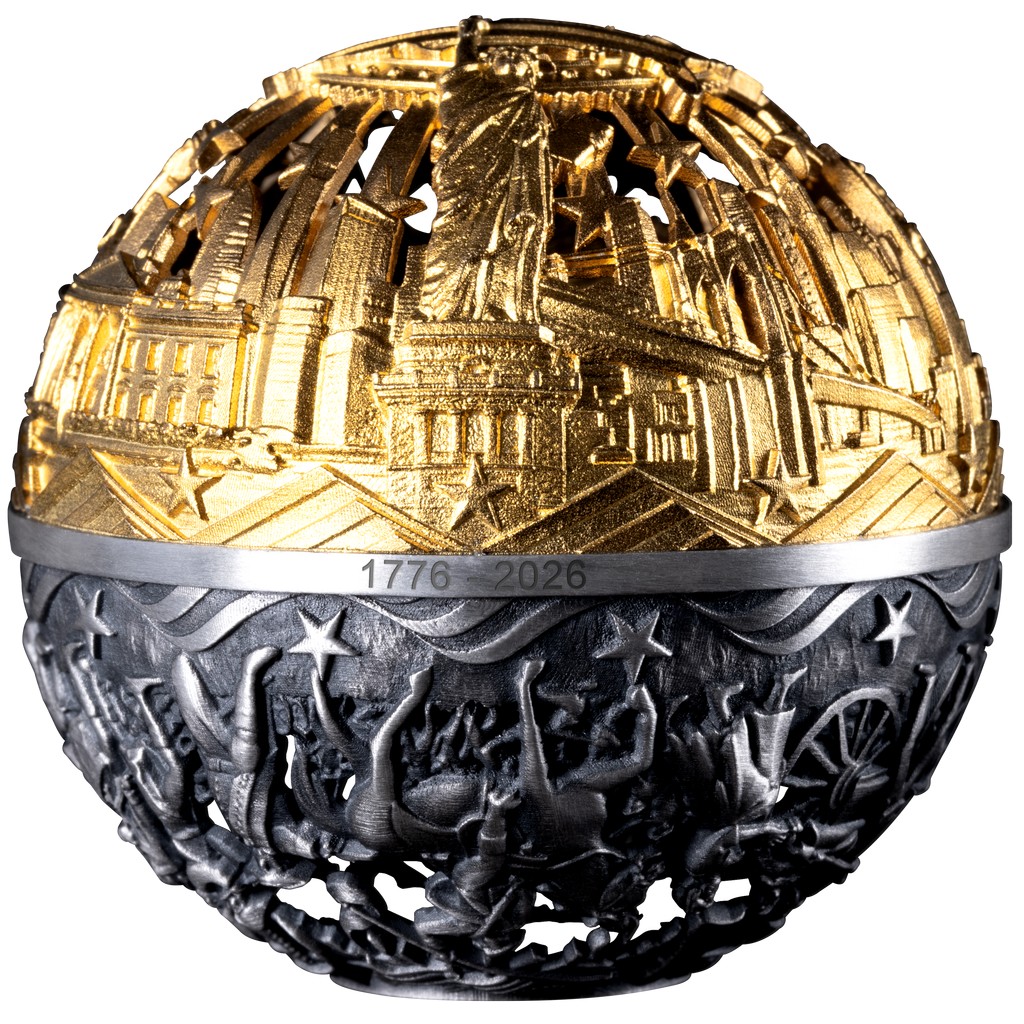 SAMOA 5 Dollars 2026 – Revolution and Liberty – 2 oz 0.999 silver antique finish – mintage 1,776 – diameter 50 mm – observed price $325.75.
