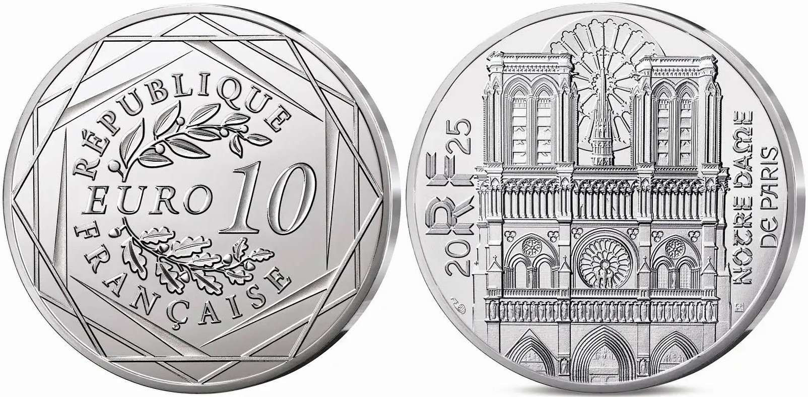 FRANCE 10 Euro 2025 – Notre-Dame de Paris – 13 g 0.333 silver UNC – mintage 15,000 – diameter 31 mm – price $15.