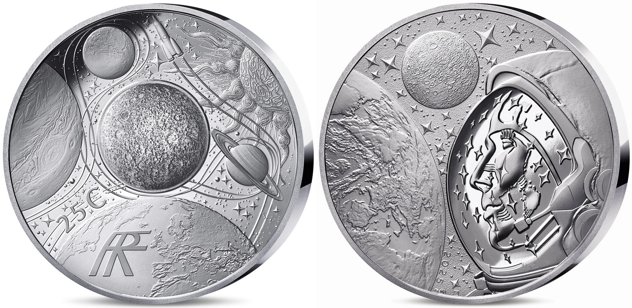 FRANCE 25 Euro 2025 – The Space Odyssey with Thomas Pesquet – 2 oz 0.999 silver Proof – mintage 1,500 – diameter 41 mm – unknown price.