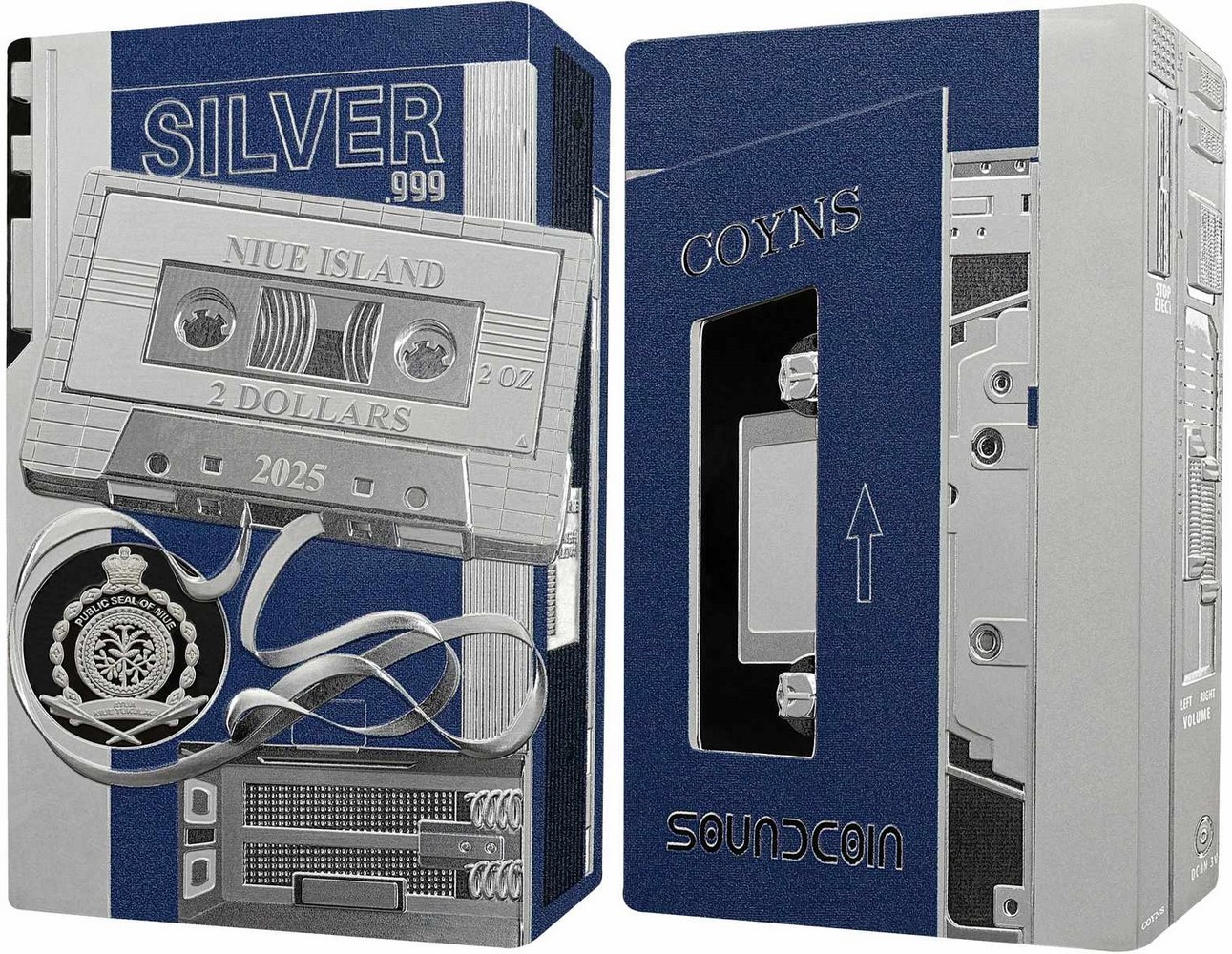 NIUE 2 Dollars 2025 – Walkman – 2 oz 0.999 silver silk finish – mintage 499 pcs only – size 41 x 65 mm – observed price $304.50. Uncolored version exist.