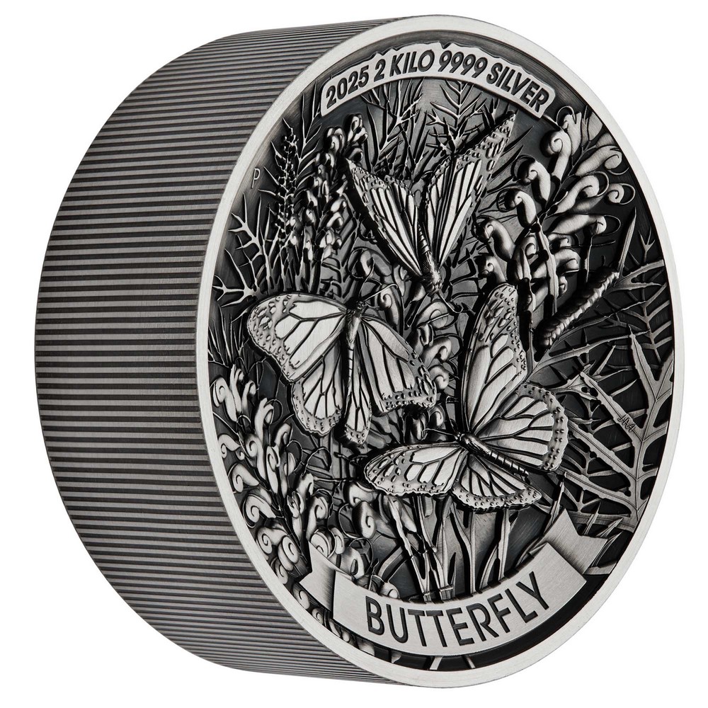 AUSTRALIA 60 Dollars 2025 – Butterfly – 2 kg 0.999 silver antique finish (high relief) – mintage 200 pcs only – diameter 101.30 mm – price $5,514.