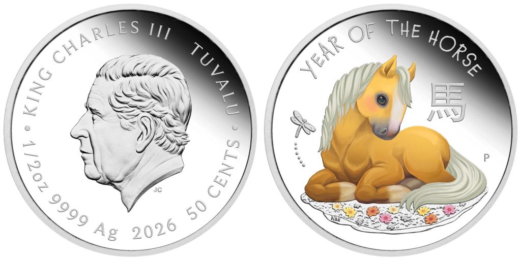 TUVALU 50 Cents 2026 – Year of the Horse : Baby Horse – ½ oz 0.999 silver Proof – mintage 7,500 – diameter 32.6 mm – price $75.25.
