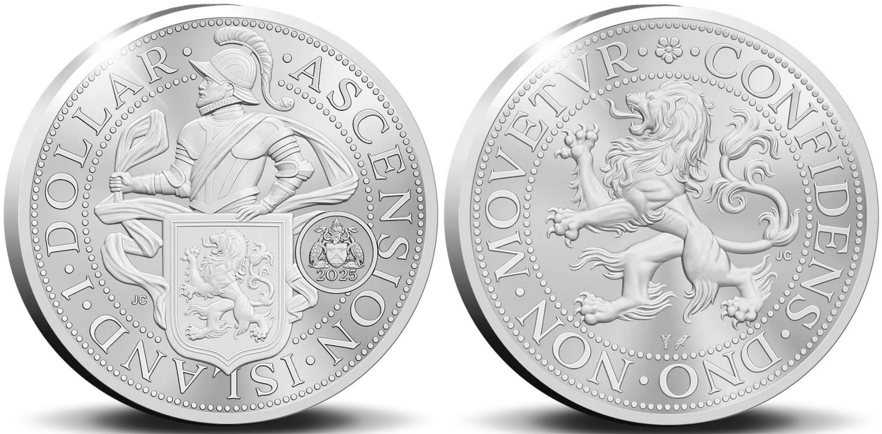 ASCENSION ISL 1 Dollar 2025 – Lion Daalder – 1 oz 0.999 silver Proof – mintage 2,000 – diameter 38.7 mm – unknown price.