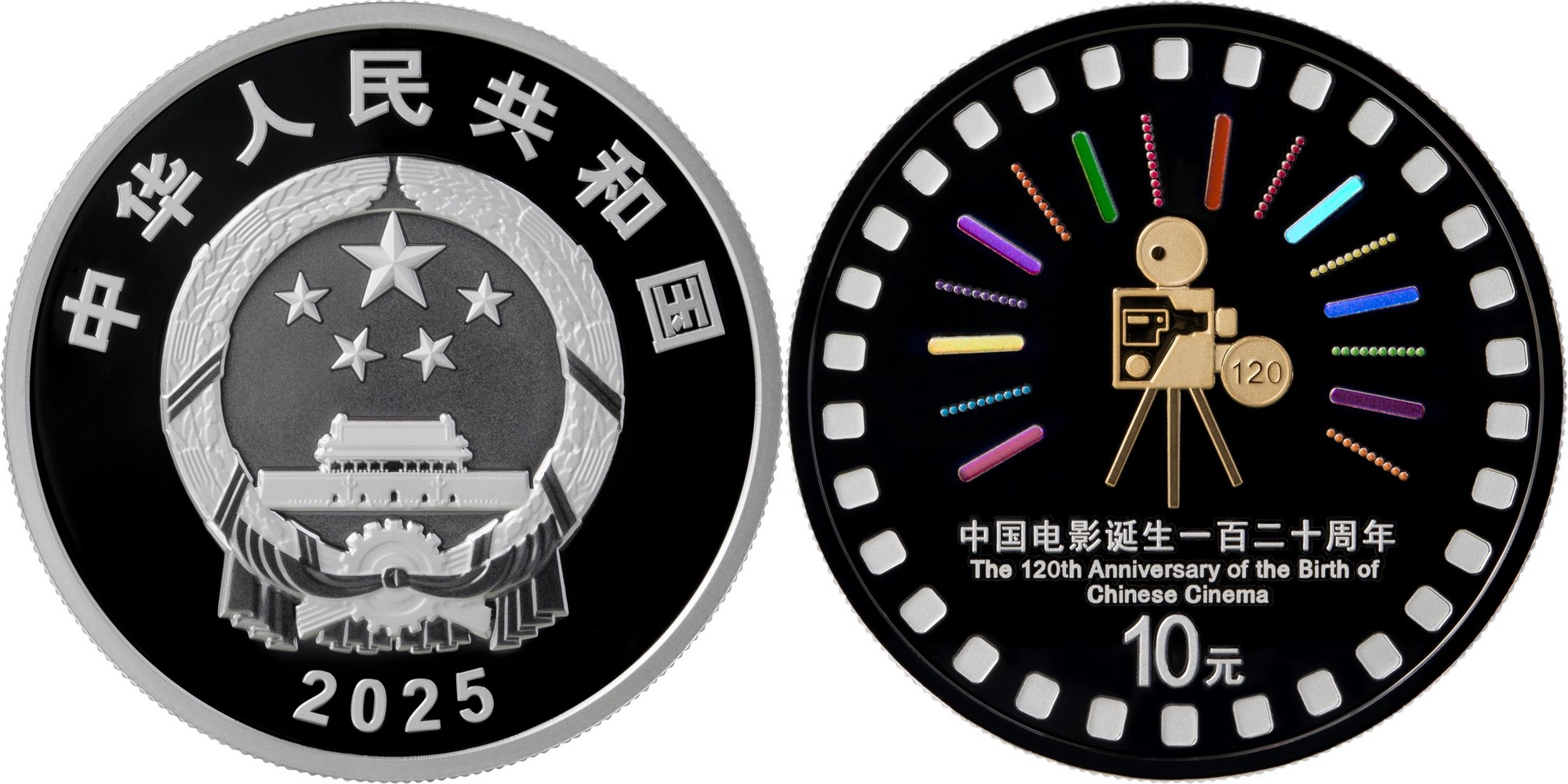 CHINA 10 Yuan 2025 – 120th anniversary of Chinese cinema – 30 g 0.999 silver Proof – mintage 30,000 – diameter 40 mm – unknown price.