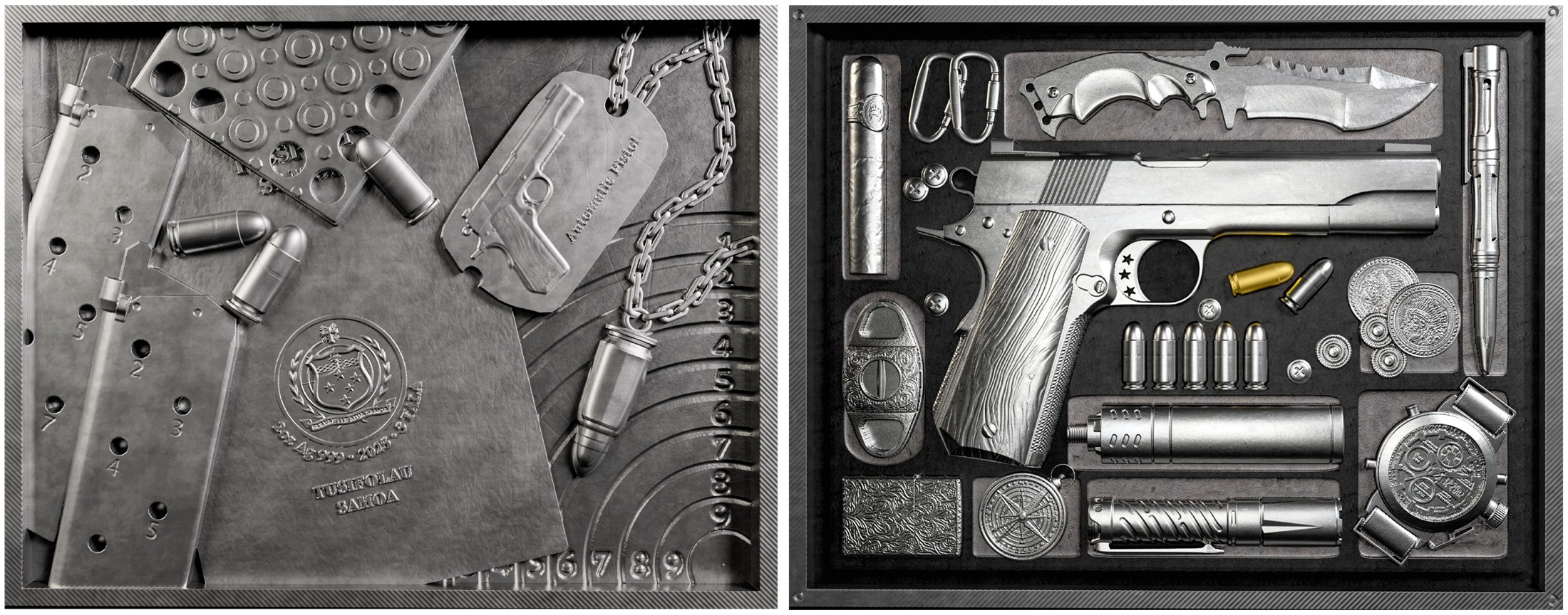 SAMOA 5 Tala 2025 – Mission X – Pistol – 2 oz 0.999 silver antique finish (high relief) – mintage 399 pcs only – size 55 x 43 mm – unknown price.