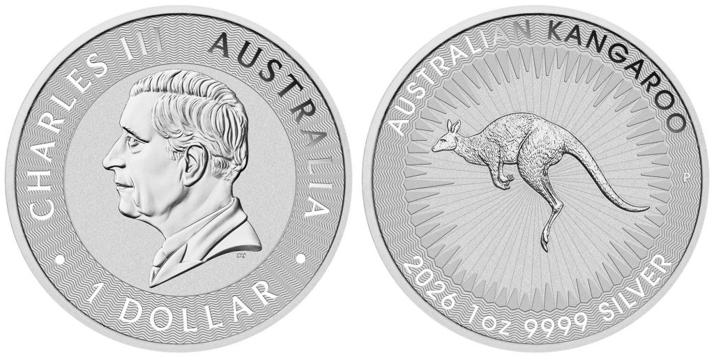 AUSTRALIA 1 Dollar 2026 – Australian Kangaroo – 1 oz 0.999 silver Bullion – unlimited mintage – diameter 40.9 mm – unknown price.