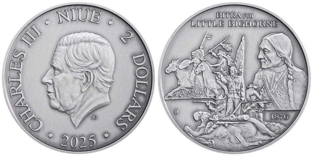NIUE 2 Dollars 2025 – Battle of Little Bighorn – 1 oz 0.999 silver antique finish – mintage 250 pcs only – diameter 40 mm – unknown price.