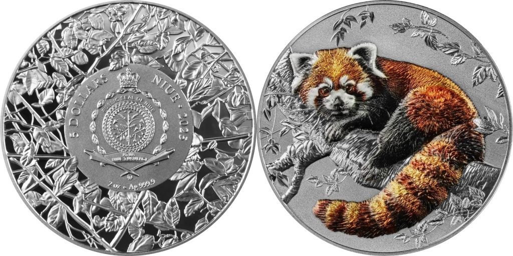 NIUE 5 Dollars 2025 – Red Panda – 2 oz 0.999 silver BU (ruthenium plated) – mintage 300 pcs only – diameter 50 mm – unknown price.