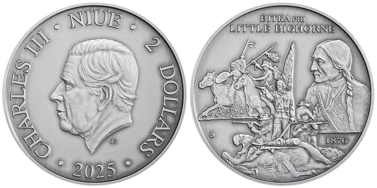 NIUE 2 Dollars 2025 – Battle of Little Bighorn – 1 oz 0.999 silver antique finish – mintage 250 pcs only – diameter 40 mm – unknown price.