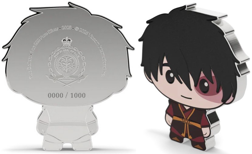 NIUE 2 x 2 Dollars 2025 – Avatar le dernier maître de l’air : Zuko chibi ou son variant – 31,1 g Argent 999 Proof – 1000 exemplaires – taille 32 x 36 mm ou 27 x 36 mm – prix 113,80 euros.