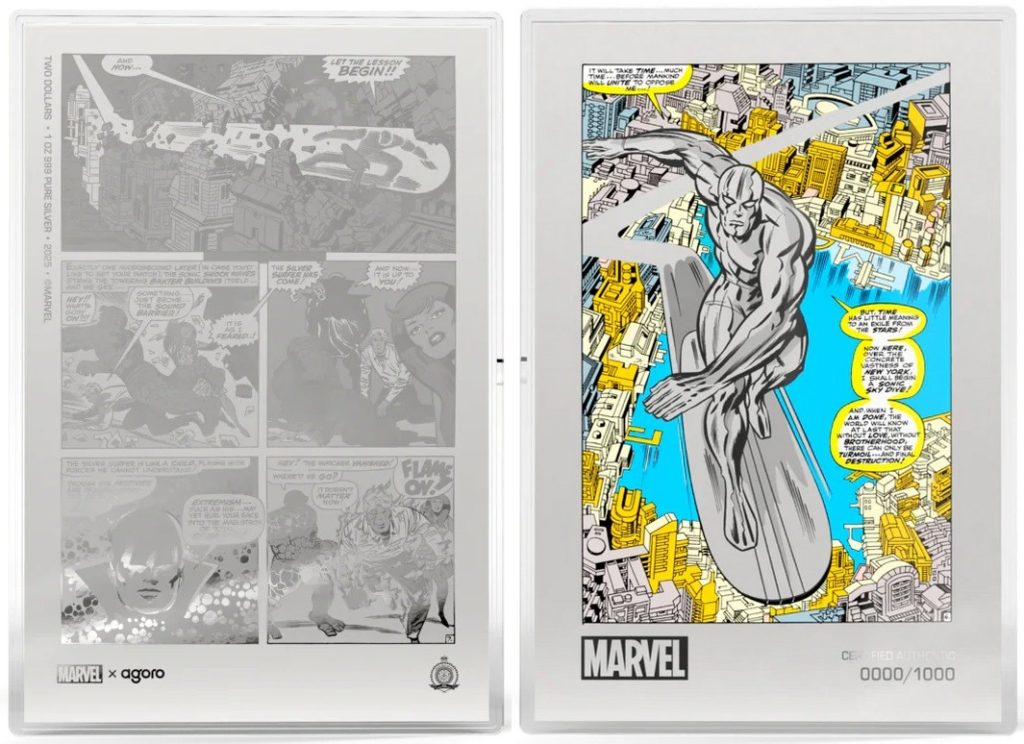NIUE 2 Dollars 2025 – Marvel : Les 4 fantastiques n°72 (page) – 31,1 g Argent 999 Proof – 1000 exemplaires – taille 175 x 262 mm – prix 143,90 euros.