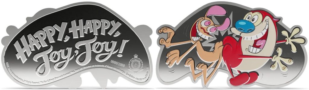 NIUE 2 Dollars 2025 – Ren et Stimpy : Butt Bump – 31,1 g Argent 999 Proof – 1000 exemplaires – taille 76 x 44 mm – prix 113,80 euros.