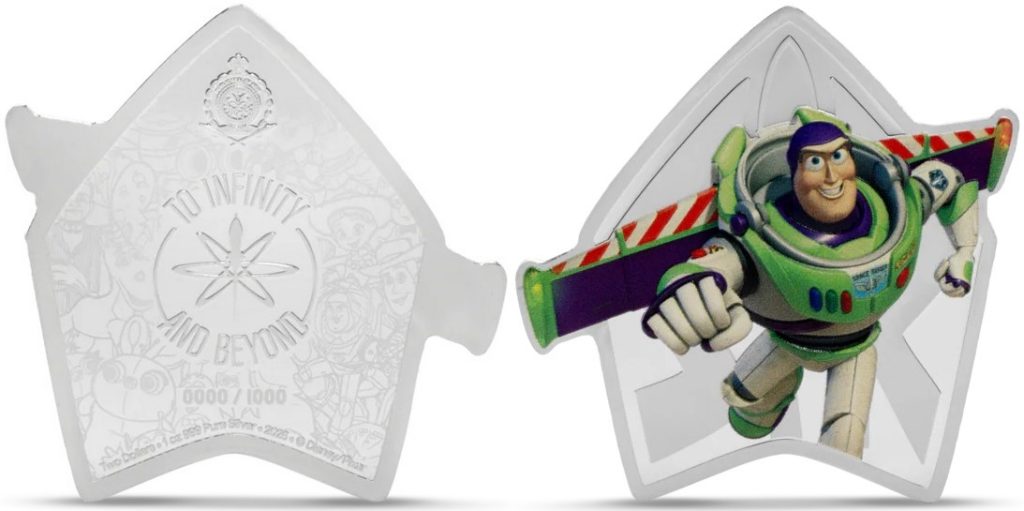 NIUE 2 Dollars 2025 – Toy Story : Buzz – 1 oz 0.999 silver Proof – mintage 1,000 – size 50 x 49.6 mm – price $132.